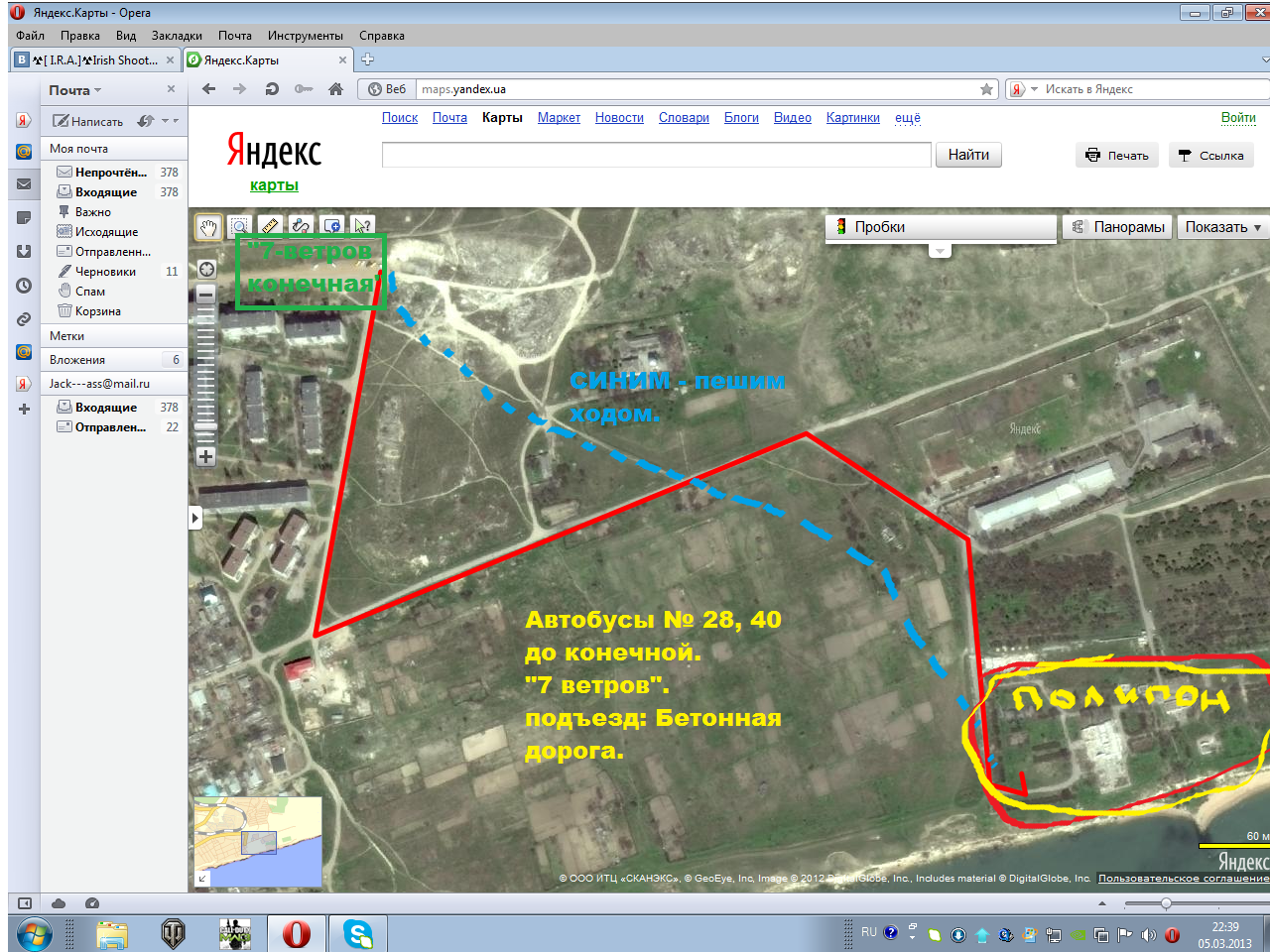 Название техническое, пока такое, найду бумаги на эту территорию. назову правильно - бумаги не нашёл по-этому будет название "База Маяк" 1. Территория частично огороженная, принадлежит частной фирме из Киева. на территории полигона находится сторож. со сторожкой вместе... Тип полигона - зелёнка, разрушенный урбан, берег, пляж. 2.Находится в черте города, на северо-восточной окраине Керченского полуострова. на севере поселка Подмаячного. Проезд мимо переправы на п. Маяк, мимо страусиной фермы по бетонке строго прямо, конец бетонки - точка прибытия. Проезд асфальтобетон, стоянка для машин. 3. Рельеф холмы, зелёная пересечёнка. 4. Фото полигона.База Маяк 5. Гугл - БО Маяк-развалины