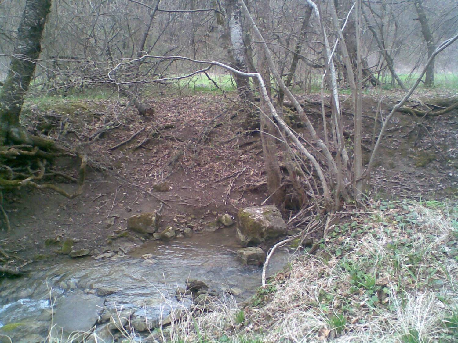 | Сегодня был на месте... Тетя Люда, готова дать номер , тому кто устанет от природы.. ВСЁ Цветёт !!! Вода журчит!!! Поляны зеленые !!! Лес пока "лысый" !! То что слева от "места"...или спуск по первой дороге....
